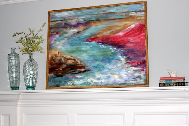 That painting looks like it was made for your house! The colors are perfect and it gives just the right pop of color for your mantle. Very pretty! $6! What a deal!